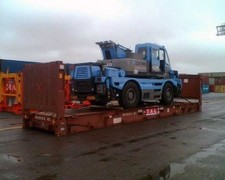 Contenedor de 20' usado como carga de mercancía sobredimensionada.